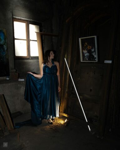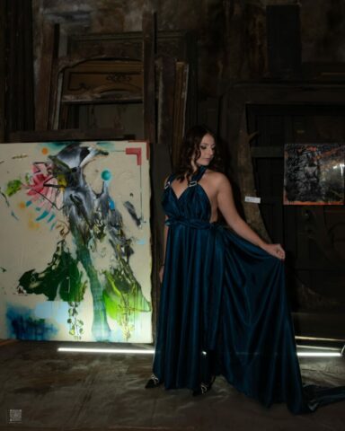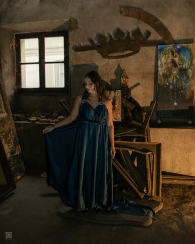 L’abito viene confezionato su misura in base alle specifiche del cliente. È possibile scegliere tessuto, colore, lunghezza e eventuali dettagli estetici.